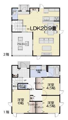 | 間取り(内訳) | 3LDK(LDK20.9帖 洋室6帖 洋室4.5帖 洋室4.5帖) | 建物面積 | 104.34㎡ |
